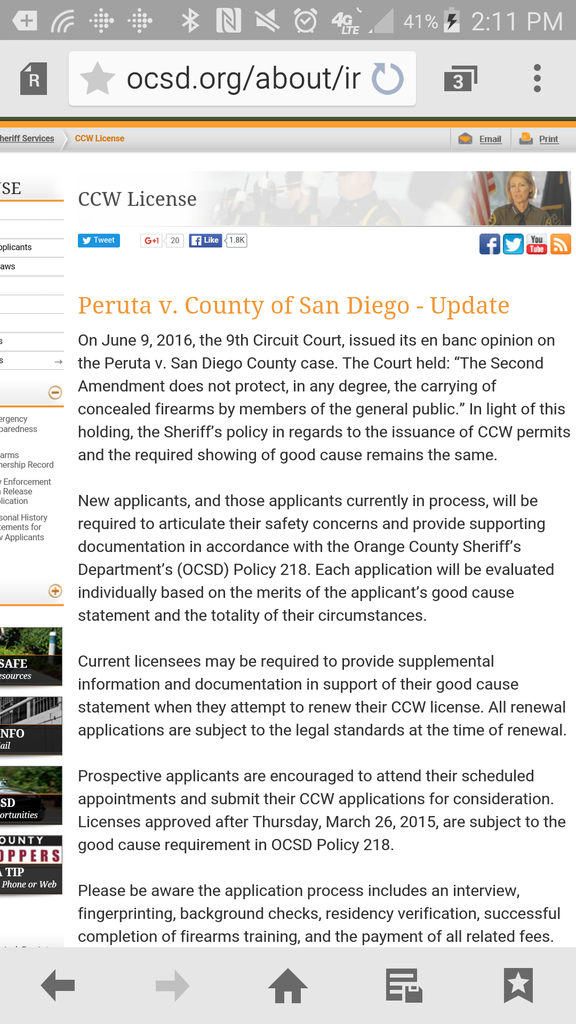 I sent out my renewal info June 3rd, today I got an email stating to provide my employment information. I replied back that I am not currently working due to a career change. I stated that I hope it's not a problem. We will see if not being currently employed has any bearing on their renewal policies. I'll update when I hear back from the OCSD employee handling my file.Nikita Khrushchev said"We can't expect the American People to jump from Capitalism to Communism, but we can assist their elected leaders in giving them small doses of Socialism, until they awaken one day to find that they have Communism. "Comment