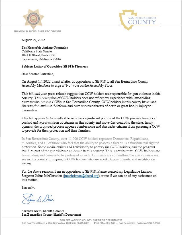 This is just the letter from San Bernardino County Sheriff Shannon Dicus but the other counties mimic this one.
