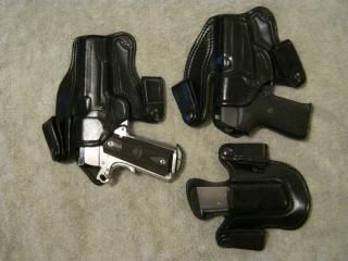 Both using TT Gun leather reinforced IWB holsters. The 'reinforced' has a small kydex liner at the mouth which keeps the holster open so 1 handed reholstering is easy.