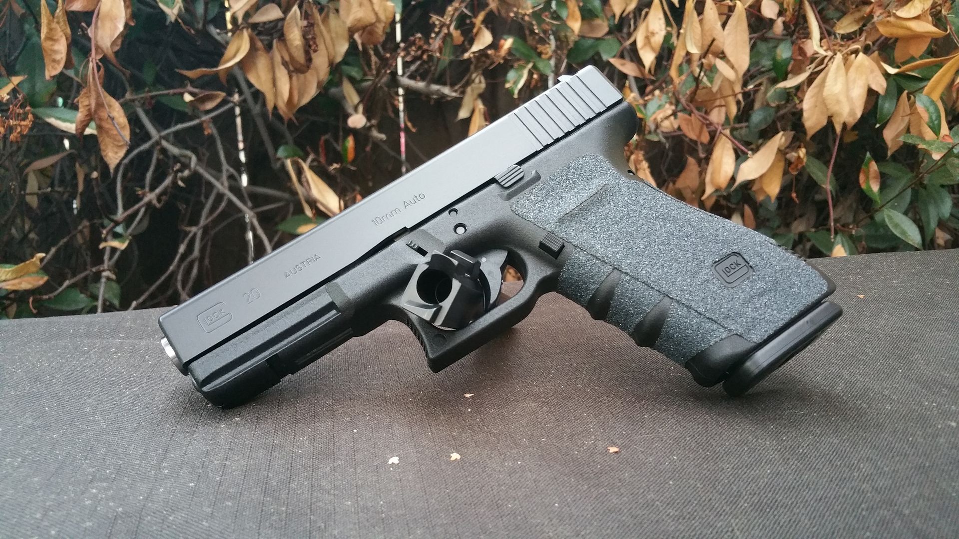Step one was to add talon grips. Some people love 'em, some don't. I personally like having a strong purchase on the gun and feel the gen 3 stock grip is fairly slippery. Again, especially with full-power 10mm ammo, I want to hold on.