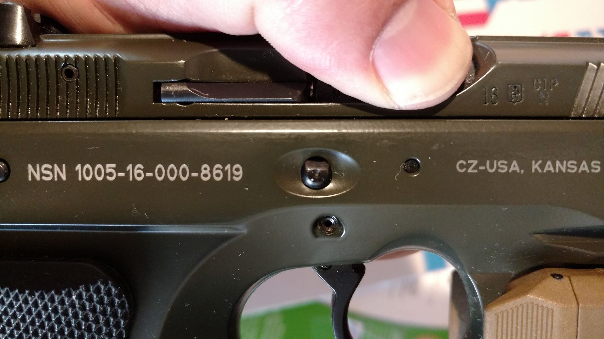 Grabagun recently had the OD Green P-01 come in stock, but they couldn't tell me if they had the NSN# because the guns were offsite in the warehouse. I know the CZ website says newer models may or may not have the NSN#