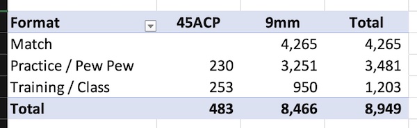 Darn that’s outstanding, I didn’t shoot that much everything combined. I was a hair under 29,000.I’m the opposite, I shot something like 30k of pistol round last year and it’s almost all 9.