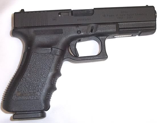 With all of the hype about the new-style Glock frames, such as the skin-removing RTF and the jump-on-the-interchangeable-backstrap-bandwagon Gen4, I very much appreciate the simplicity and usability of the Gen3 frame. As a way of recognizing this, here are some "Plain Jane" (sort of) Glock 17 snapshots. I say "Plain Jane" because it is a GSSF 10th Anniversary Commemorative, 1000 of which were made in 2001. It has a special serial number, specifically "GSSF" plus three digits, along with engraving on the right side of the slide, between the ejection port and muzzle, but is otherwise identical to a "Plain Jane" Glock 17. The serial number range is GSSF000 through GSSF999.