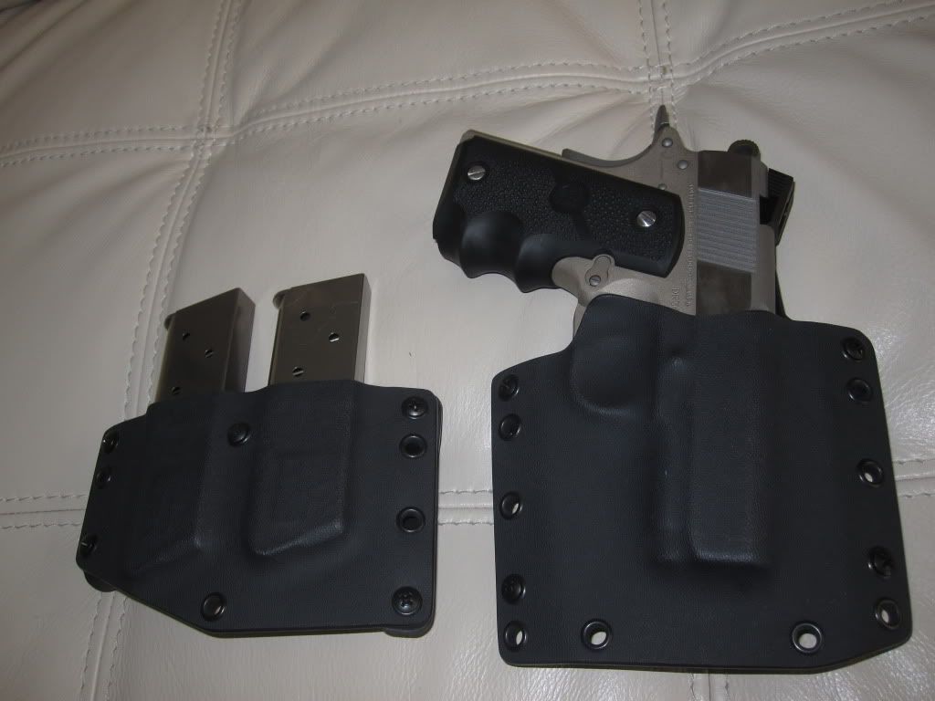 After nearly 5 months, my Raven holsters finally arrived. i talked to Eugene a bit at the Ontario Gun Show and i will be ordering up a couple of his holsters for a couple of my other babies soon...his wait time is much better than Raven's.