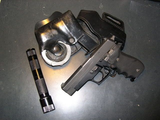 just arrived today, it's my first Sig. Was a duty gun, guy I bought it from says not many rounds through it. I checked it out and the internals looked great, the barrel nearly new, the outside looks like it's been holstered and unholstered millions of times, and magwell looks pretty abused. Can't wait for the 10 days to be up, I'll be wasting 9mm like it was going out of style!!! I may eventually send it to Sig for refinishing, but right now I'm just gonna beat the hell out of it...Tim