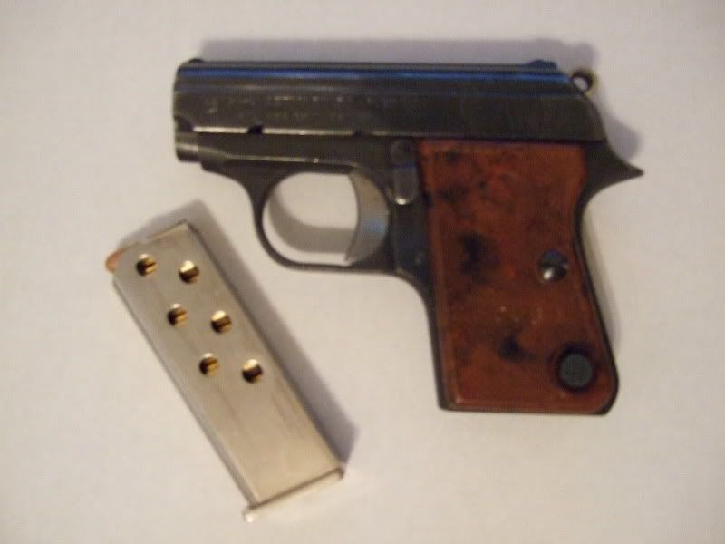 Picked up my Astra Cub .25acp the other day. Got it on consignment from an estate sale at Huntington's in Oroville for $150. Haven't gotten a chance to go shoot it yet, but I'll post a range report soon. The gun is in great shape...very few wear marks, all very small. Looks like it was carried around back when it was ok to do so and then not used much after that. Magazine looks brand new! All matching numbers.