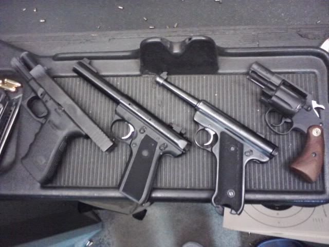 Finally got my Ruger 22/45 out of jail and straight to the range we went. Shot 300+ rounds of Federal and not one hiccup from the bunch. The only real issue I encountered was its thin grips. Any recommendations for a good slip on grip? Switching back between the Mk1 and Mk3 22/45 I could definitely feel some differences beyond just the grip angle. Personally I think the Mk1 has a better overall balance, while the 22/45 seems a bit barrel heavy. The triggers were almost identical on the pull but the reset on the 22/45 was much more tactile. While they both have plain jane iron sights, the 22/45's rear sight channel is a bit taller and wider. Groupings on both models were solid but by the end of the session I was drilling tighter patterns with the 22/45.