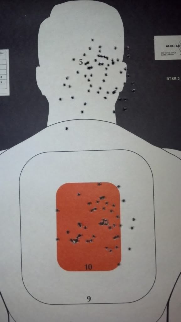 The group in the middle was Federal American Eagle and the stuff in the head was Remington Gold at 15 yards. I wasn't really trying to be very accurate, just out having some fun.
