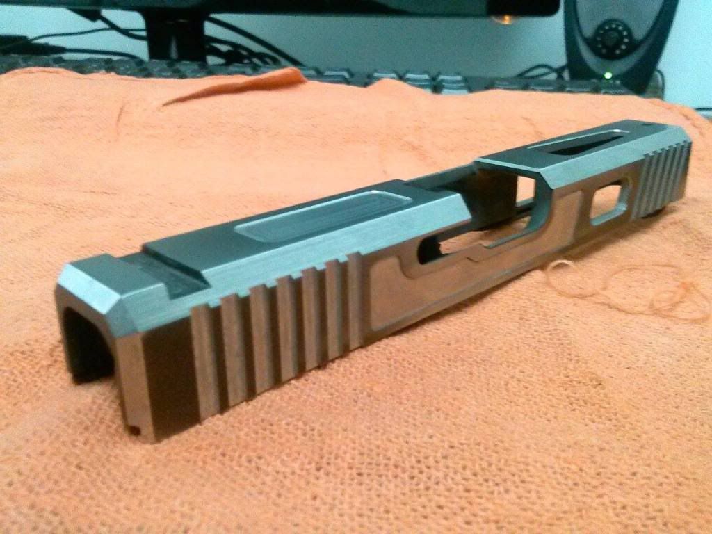 I had the slide drawn up and cut on a CNC machine. It turned out pretty damn good so my buddy decided to send in his G22. Both guns shoot really sweet now and it didn't take 6-8 weeks to get done like some places.