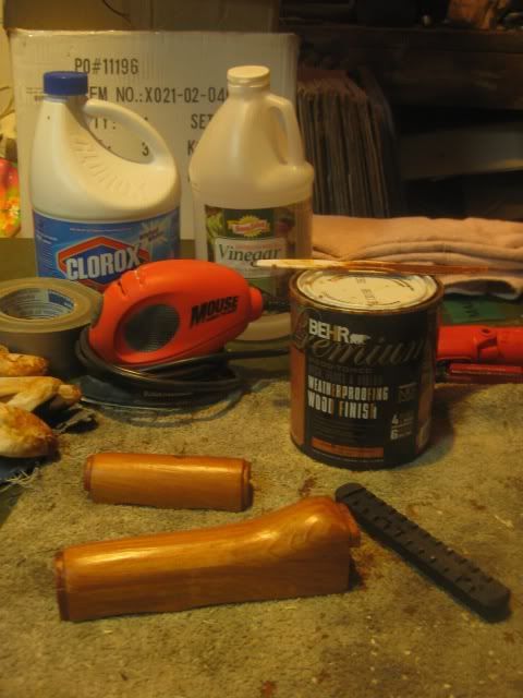 The wood was in pretty good shape compared to most Romanian AK's. So I was kinda worried about messing with it, but it needed some kind of finish to it. So I took the wood off and started the bleaching process.