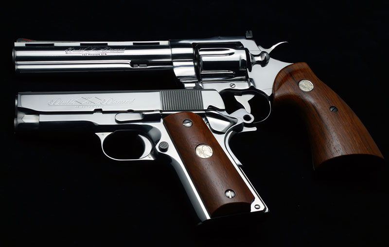 Colt "Double Diamond" set to commemorate Colt's 150th birthday. The finish is what Colt calls "Ultimate Bright Stainless"