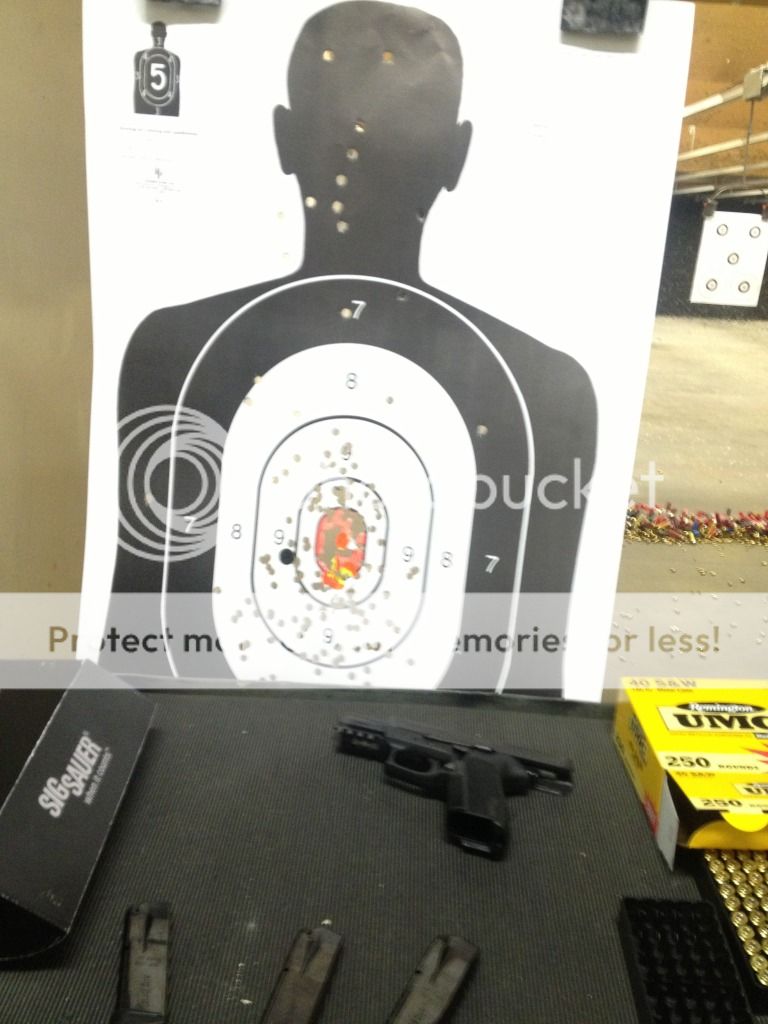 Just Got back my first new hand gun purchase, the Sig Sauer SP2022 .40 cal. Got it for a nice price of 399$. I rented this gun before i bought it so i knew what i was getting before hand. I shot the .9mm and it was very nice and accurate.