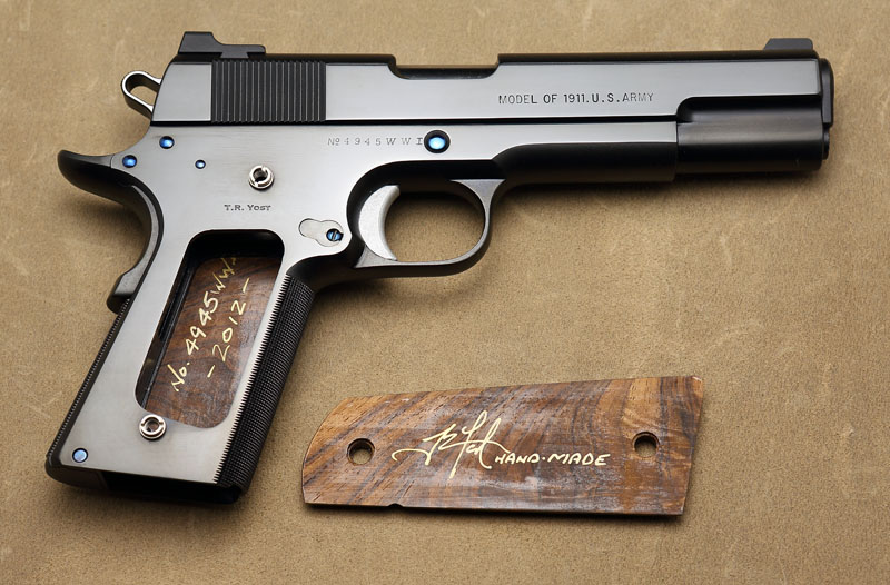 The way that Heirloom Precision works is that you send in a base 1911, and they completely rebuild it. They even go so far as to weld and straighten out the frame to get super tight tolerances. My original idea was to use a US Government issued World War 2 mixmaster to serve as the base gun. I wanted the classic Colt roll marks (slide markings). However, when I spoke to the shop they recommended an alternate route. Several years ago Colt issued a World War I reproduction. It had the looks and markings of a Colt via WWI but was made from modern techniques. Heirloom stated that the modern reproduction gun has much better metallurgy to work with.