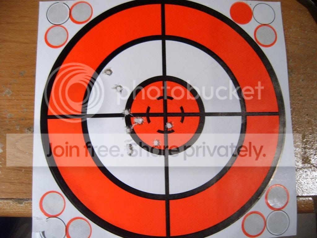 Bull eye size 6" (red orange circle), 50 yards with sandbag as a rest.