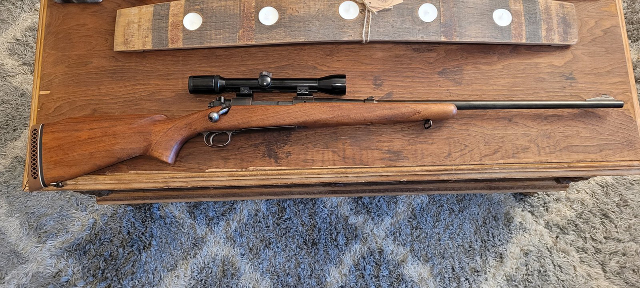 Next is a pre-64 Winchester model 70 in 30-06. This one is in "strange condition". Meaning it is in pretty good shape, but it looks like someone stripped the bluing and maybe tried to color case finish it?