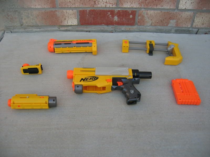 Got this for X-mas from my wife and kids. Modular rifle system that is CA legal. 6 shot magazine, red laser, peep sight, removable stock and removable barrel.