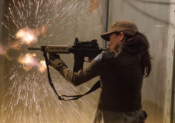 From "The Walking Dead" - Rosita is on the left. Can't seem to find a good pic of her using the weapon on the net. Someone has an animated Rosita firing an M4A1 on multiple Youtube vids but haven't watched them though I am guessing it may be a derivation of the character from the AMC tv show.Comment