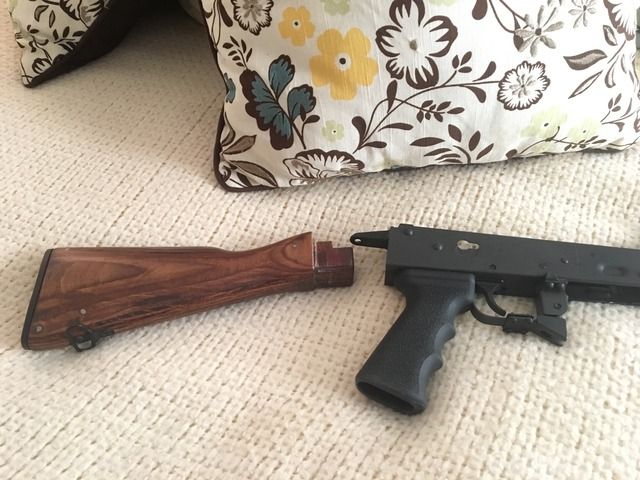 I'm new to AKs and I decided to swap out the buttstock on my AK from a black polymer to a wood laminate stock. I knew that the new stock would need some fit and finish. However, as I seated the wood stock, it stopped short and is now firmly stuck. I tried leveraging it back out by sticking a screwdriver down into the hole at the front; but, it's not moving and I don't want to bust the tool or break the end of the stock. I'm not sure if I need to go out and get a rubber mallet; though, I'm not sure how well that would work at this point as she's decided she ain't moving. Or perhaps there is another way.