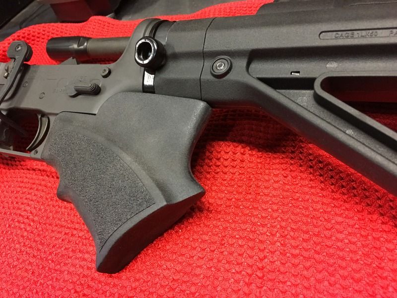 The grip is fine for getting me featureless but I am really going to miss my collapsible butt stock with cheek weld and pistol grip. This whole setup is very uncomfortable and the MOE carbine stock isn't in the right length for my shooting style. This route is still better than registering. All this stuff is bolt-on so I can revert should the laws change back again.