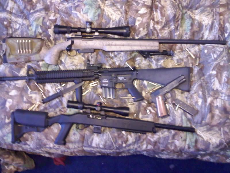 finally got the upper reciever to finish off my calg uns bear lower. bought it from another cal gunner. need to stealt he womans camera for more appropiate pictures. but figured this would make an apporpiate family picture.