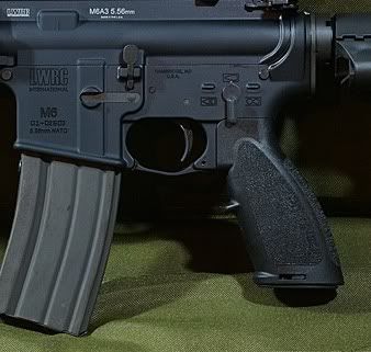 Also, looking at the other pic you posted it is certainly clear the grip is not angled in the same manner as the pic I quoted. Just look at the gap on the flat part of the lower receiver just before the radius that leads into the buffer tube threads. Perfectly obvious that there is a difference. I can also see that your back-strap is not lined up properly at the bottom edge of the pistol grip. That also makes me think that if you are not BSing you have an issue specific to your grip.