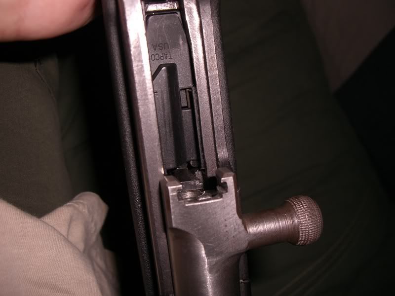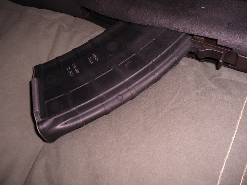 The mods on it are very simple. Basically two pins, one through the back of the mag to limit the follower to only allow for 10 rounds, and one through catch (not shown in the pics) that holds the mag in place when the mag catch on trigger group is pulled back.