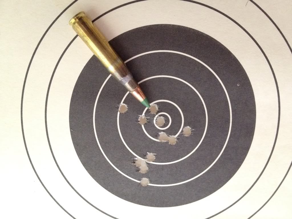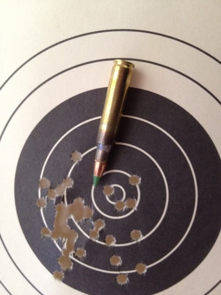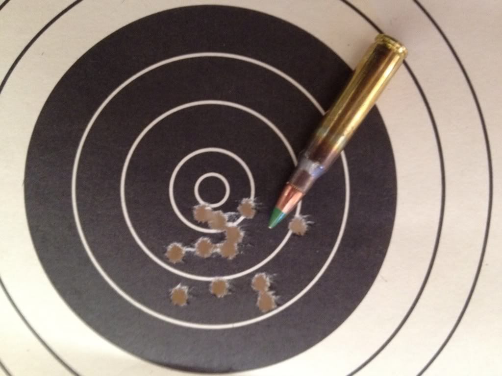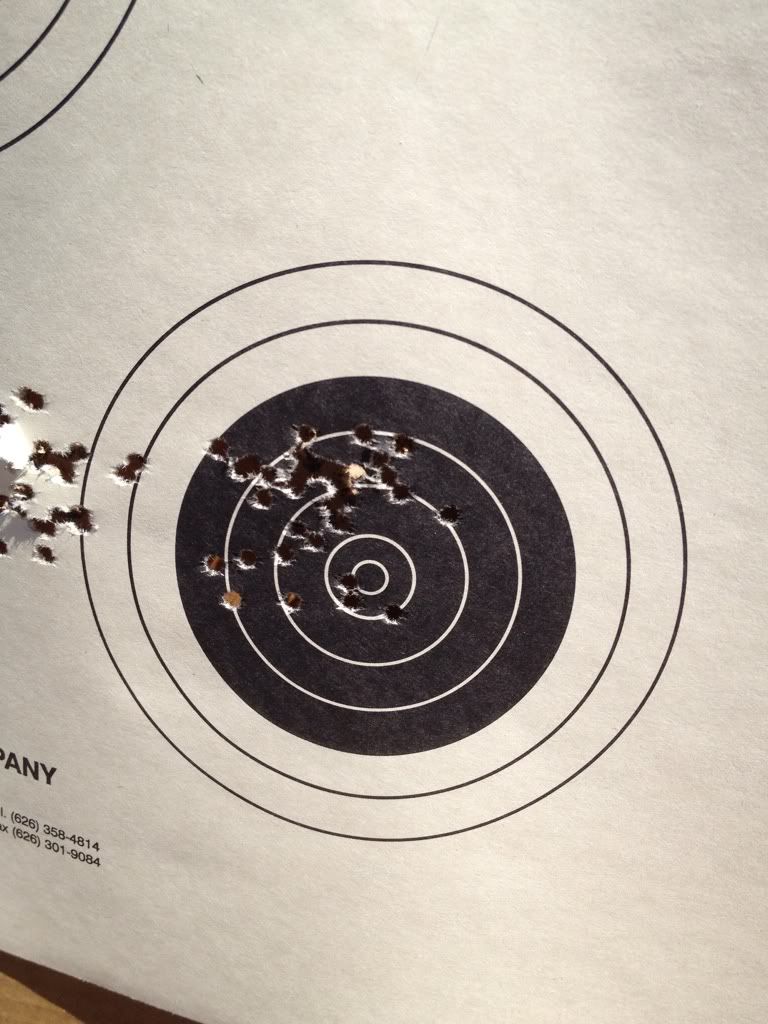 The first group was fresh out of the box on both the rifle and the sight, which obviously was a bit left. A few clicks later and things were looking really good. This was shooting out at 50 yards.