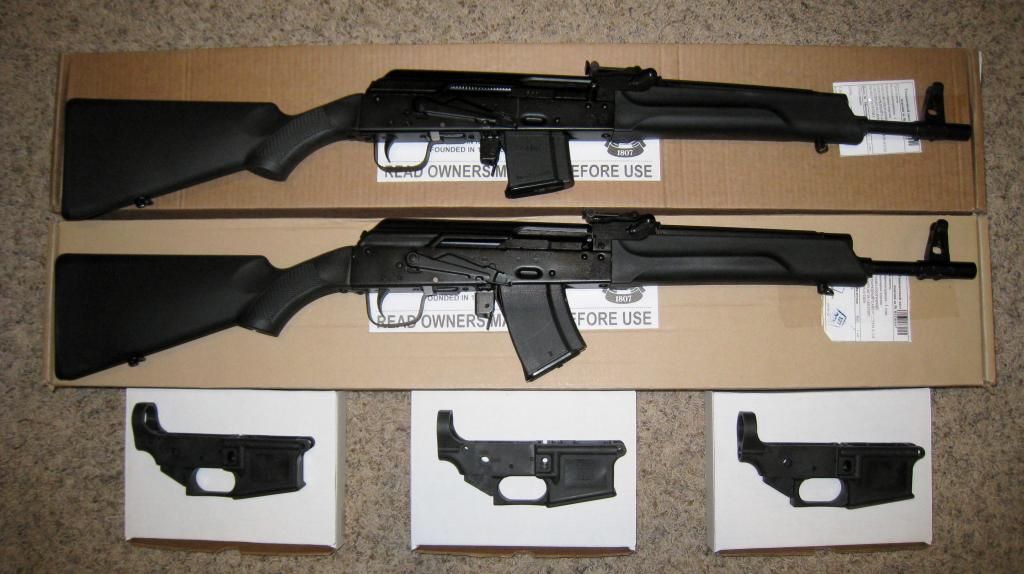 I hoped in the car and made my way down to their shop. They had a few people in there and of course all eyes were on the AR's they had for sale. I decided to pick up 3 lowers figuring who knows if I will find more. As I was browsing around I noticed these sad Saiga's hanging on the wall. No one looked at them, picked them up, or seemed to have noticed them. I asked Dennis the price and at $499 it sounded fair enough so I followed with an "I'll take it" shortly after. As he rung me up I couldn't help noticed Saiga's sad brother in .223 all by himself. Still no one looking at him...so of course like any good gun owner I had to give him a good home too.