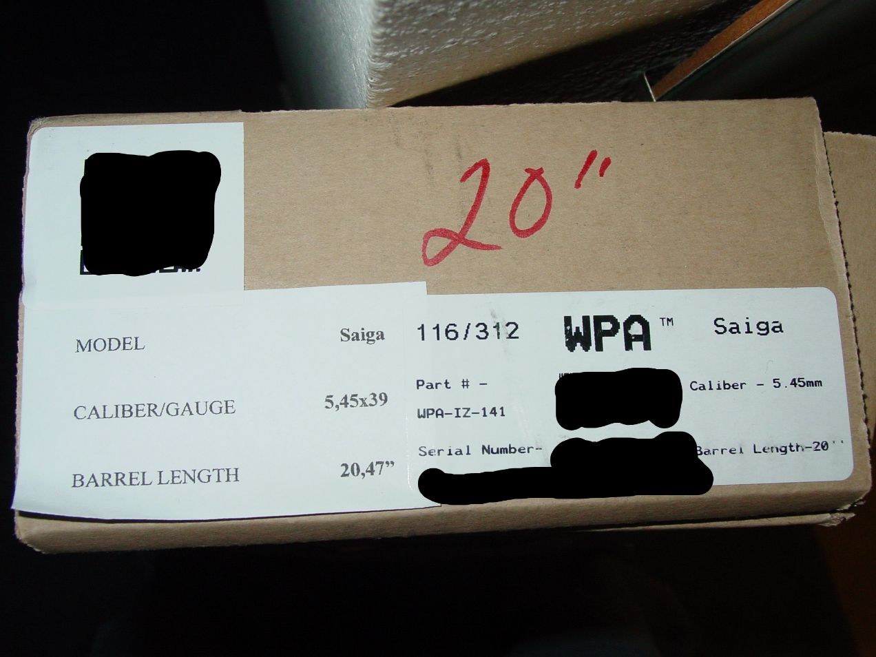 Does anybody have Saiga IZ 7.62x39 & 5.45x39 with 20" barrel?