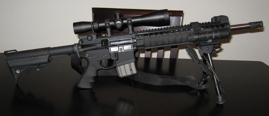 Sold this one a while back, my first attempt at a Seal Recon Rifle. Very accurate but a little heavy, so I decided to stick with my M4 shown above. If I were to build another one I would use a Mark 4 Scope, American Defense Scout Mount, LMT SOPMOD Buttstock, and a different sling. The rest would be the same.