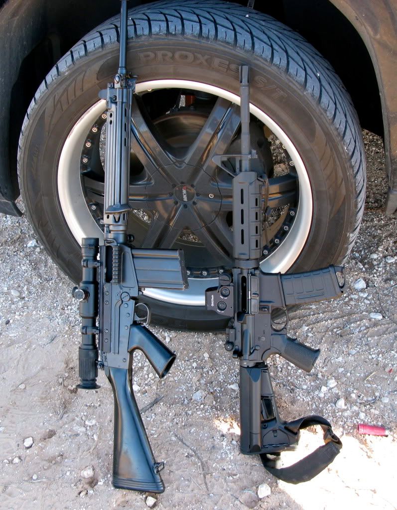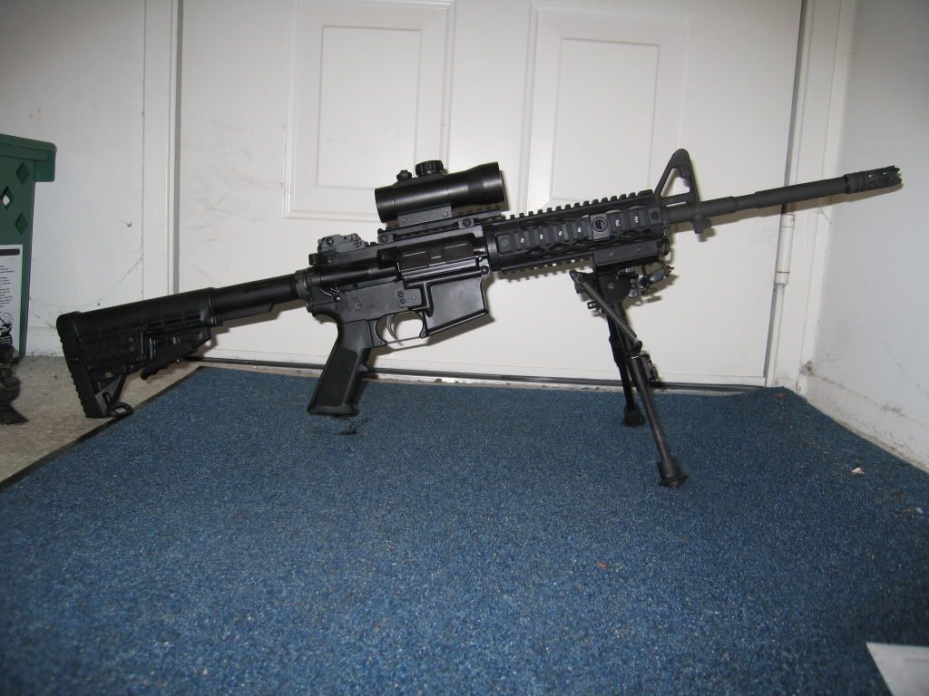 Rainy day photoshoot "01-21-10", here is my creation from traded and left over parts: Mega Lower, Eagle upper and BCG, with JPE barrel, JPE gas block, JPE Comp, RRA buttstock, YHM rail forearm, CAA grips, Aimpoint ML2 "clone", Magpul BUS, and DPMS LPK.