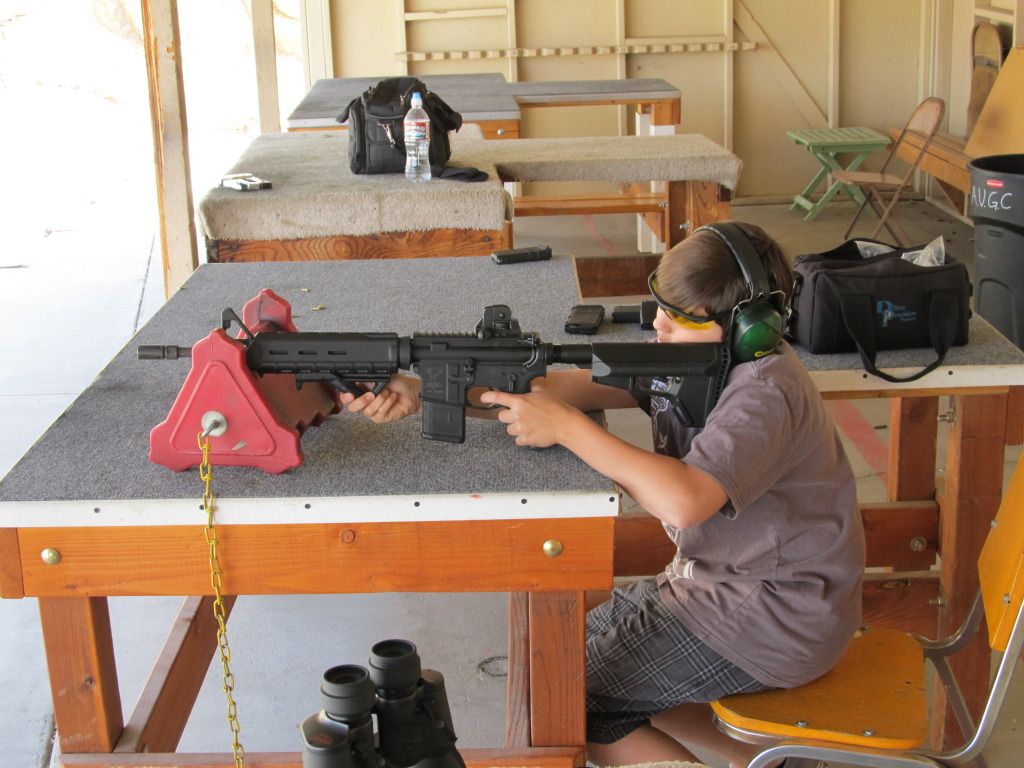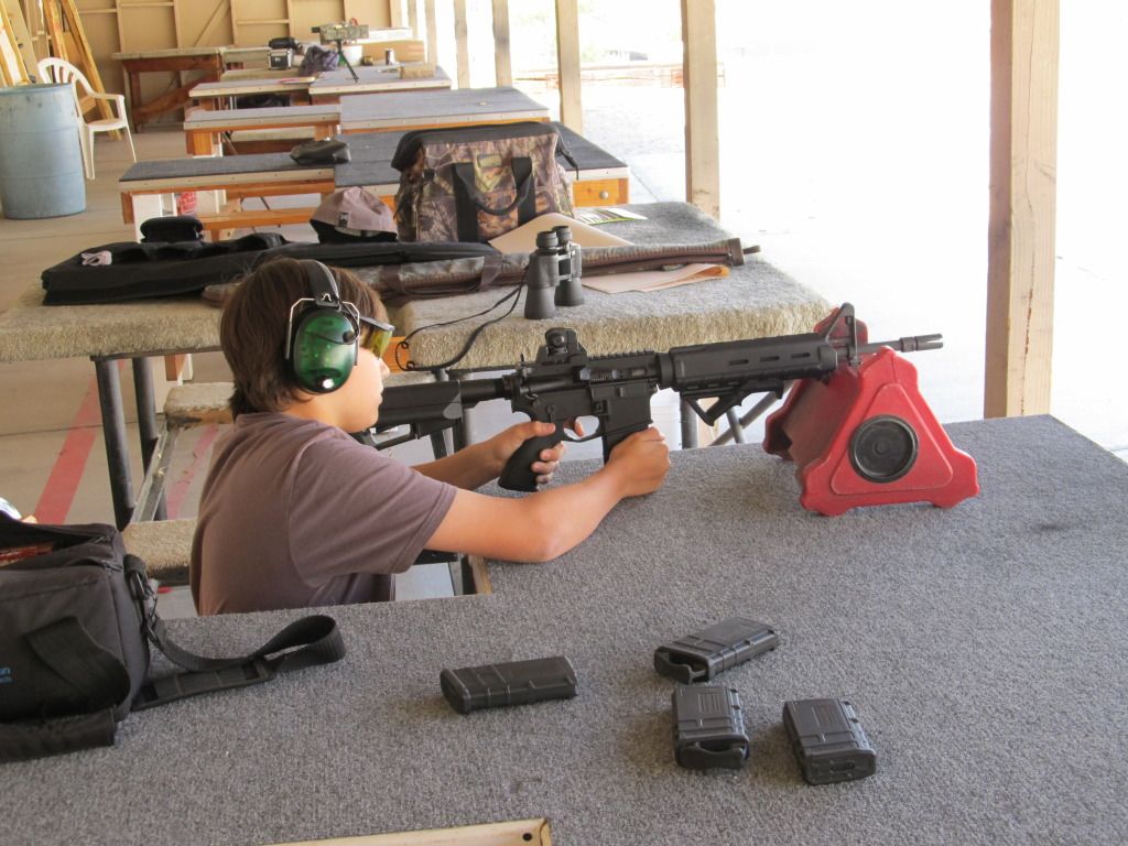 When I was building my rifle he couldn't wait to shoot it. I said "Boy, do you even know how to sight this thing?"