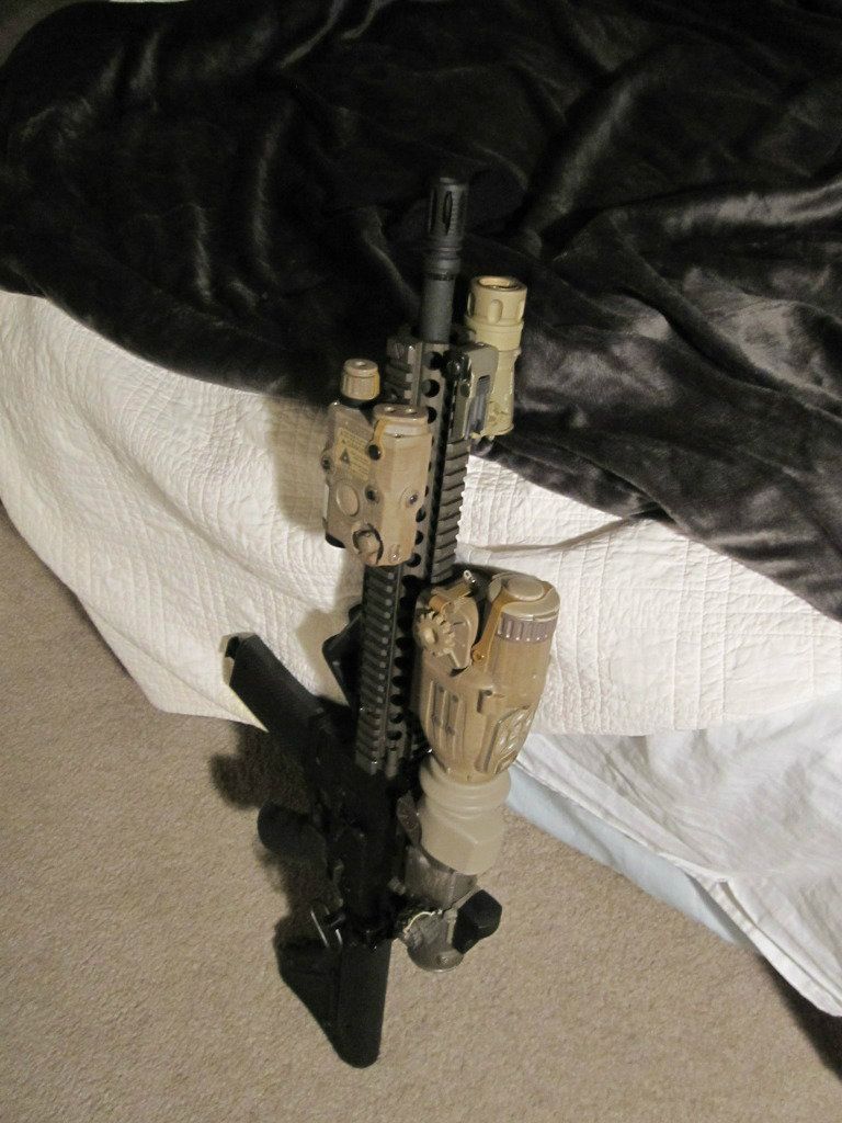 Although this is a night time rifle. During the day the CNVD would be put away and the Elcan would be used to acquire targets. The red dot is for close quarters, kind of a nice overkill.