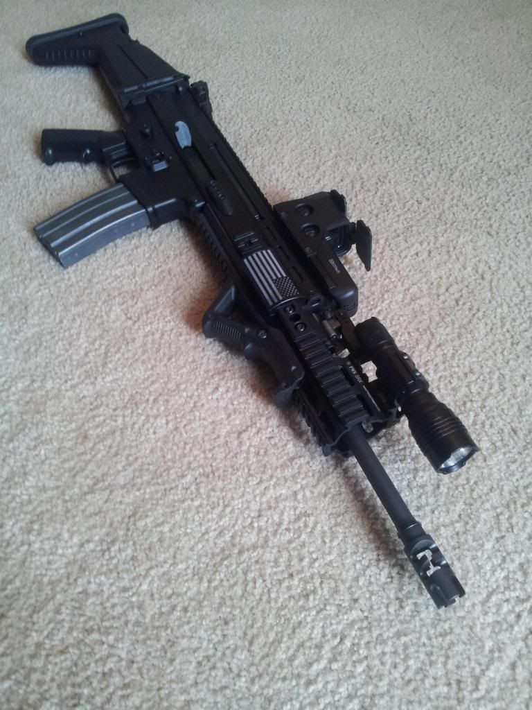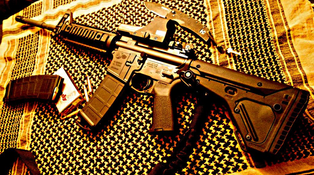 My Colt M4 (After) Troy BUIS, Eotech 512, Troy Quad Rail, Magpul PMag, Magpul UBR, Magpul Enhanced Trigger Guard, Magpul MOE grip