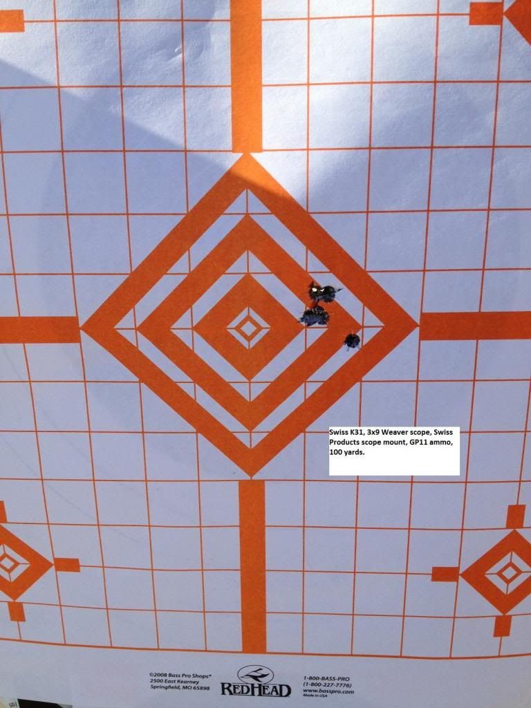 My 1941 Swiss K-31 is still quite capable even with "surplus" ammo. I must have pulled that one shot that impacted outside the 1" square of the others.