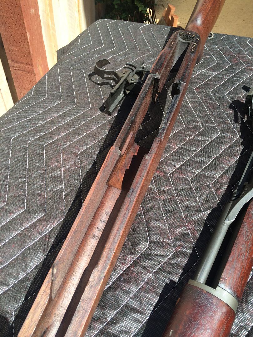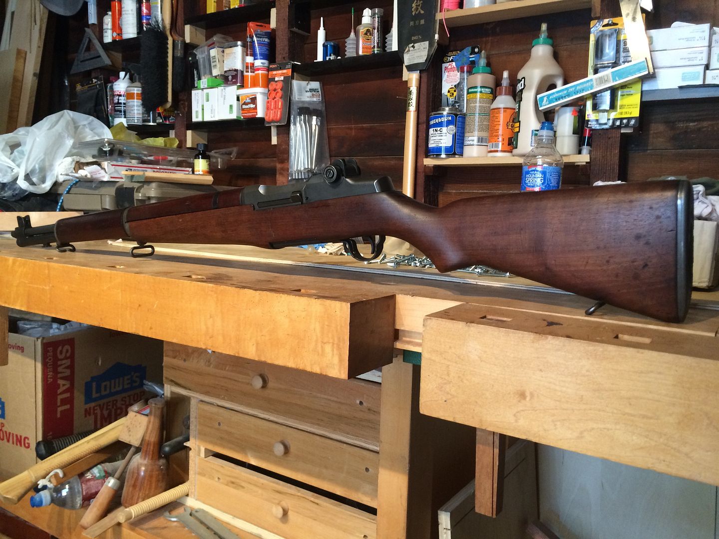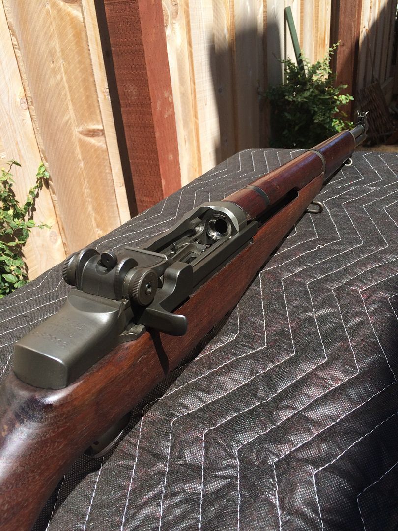 Finally took possession of the IHC M1 I mentioned over a month ago. It was a consignment at my LGS, and for whatever reason they have a 30 day wait on consignments before you can start drose. The day after I put a down payment on it CMP released the service grades. I've been gearing up for Ammogeddon and buying a few AK's before new laws so I had to pass on service grade lottery and stick with this one. It has a 1954 LMR barrel that has lowest reading on my throat gage and 0 on cmp muzzle gage, and is mirror bright. The chamber is in the white. Its a postage stamp receiver. All parts that are marked are IHC, even the gas plug. It has an IHC stock, numbered channel, notch on right side, and small faded Defence acceptance stamp. The seller brought in two m1s, this one and a ww2 era SA with VAR barrel, he wanted the same price for both and the shop really had no meat on the bone so there wasn't any dealing to be made. Altogether it was $1150 OTD. I wasn't planning on buying one that day, I feel the price was fair, and I'm happy with it and glad I won't be kicking myself later on for not buying it. Anyway, here are some phone pics.