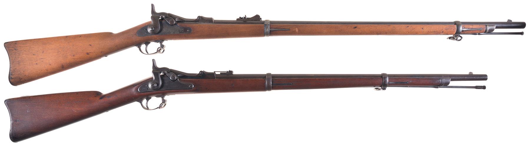 The second gun is an 1870 with the number 1561 on the barrel only, that likewise seems to have the correct parts and stamps, and a really nice 3-groove bore, but its measurements are off. 48" overall, 28 1/2" muzzle to block hinge pin, bands 12" apart. I am guessing it was converted to a cadet configuration somewhere along the line, but it sure looks like all original construction. I am hoping the someone might have some better information on this gun?