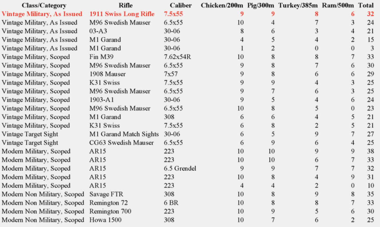 The match winner (shot a 32) shooting a 110 year old Swiss 1911 beat all but one other shooter in the vintage class with scope rifles. So what's the secret? He must be using some sort of magic dust sprinkled over the iron sight and a prayer before shooting?.