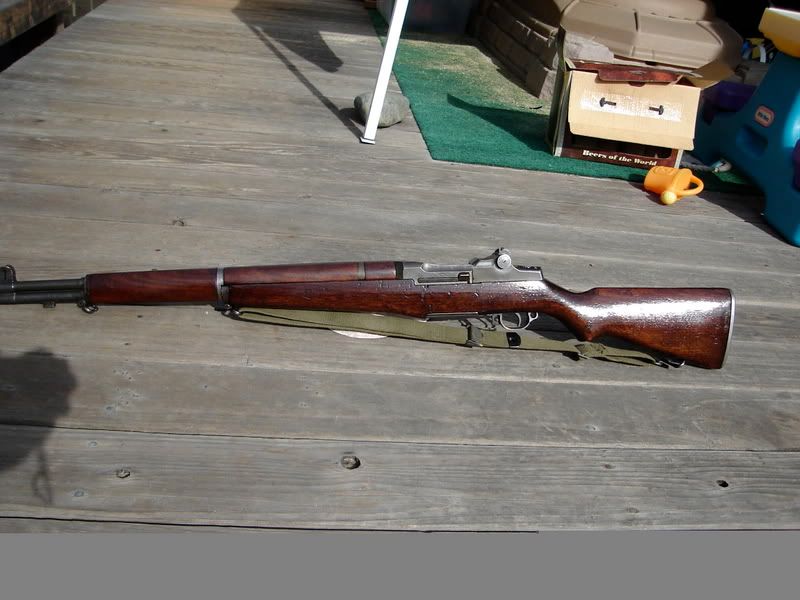 June 1945 receiver with May 1945 barrel. Barrel is bright and shiny and gauges as new. All parts were correct for the serial number with the exception of the stock, rear sight, hammer, oprod and trigger guard. I traded the beautiful EMcF slant cut stock it came with for a very good condition NFR with large and small ord stamps and single serified P. I bought the type III lock bar rear sight for $95.00, and the correct uncut 9 straight side op rod for $85.00. I had the correct -9 trigger on my Winchester rack grade so swapped it out for the -2 that came with this rifle. The milled trigger guard matches perfectly in color and wear with the rest of the trigger group so I will not change it out. I will buy a stamped guard with milled hook if I can find one that matches the color of this one.