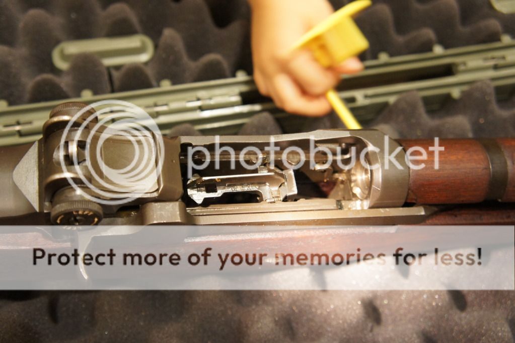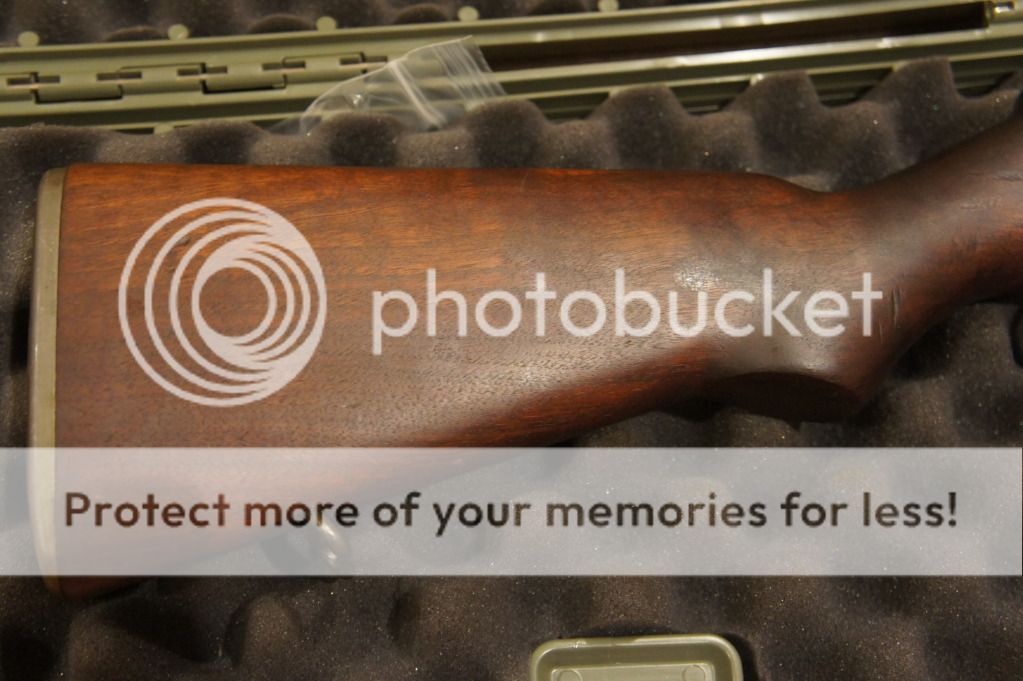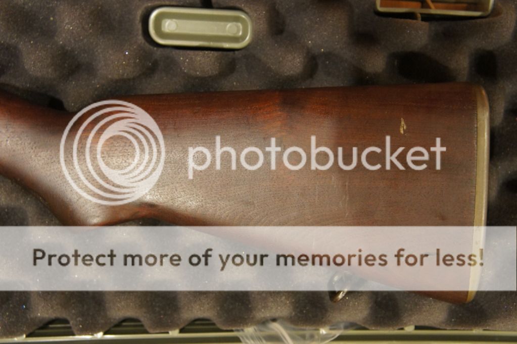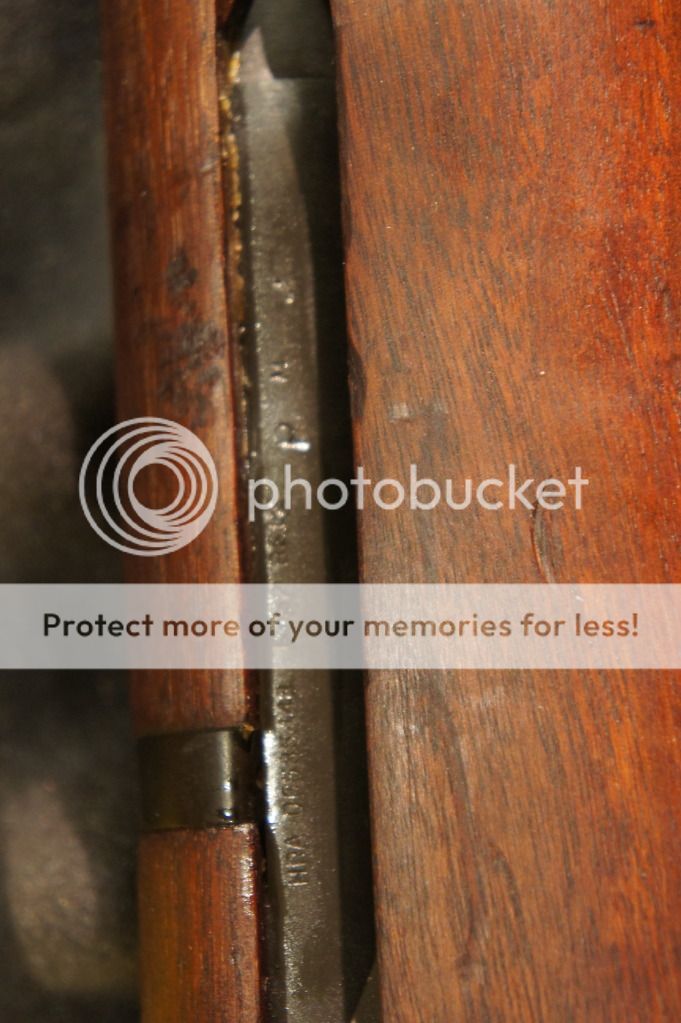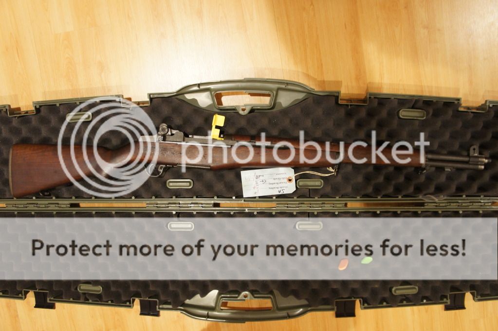 Oh yeah, the ME=1+ and the TE=2+. It has an original GI stock in very good condition. I can see the DoD cartouche and the circle P proof -mark. I can see the cosmoline caked under the front handguard. This thing needs a thorough cleaning before shooting.
