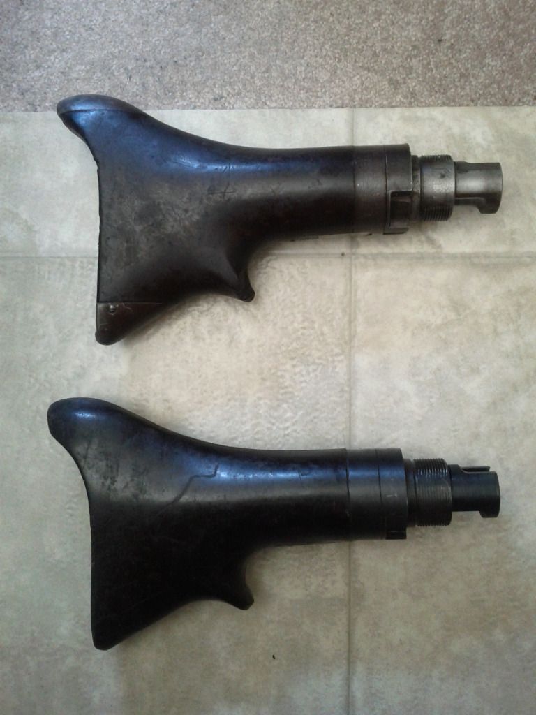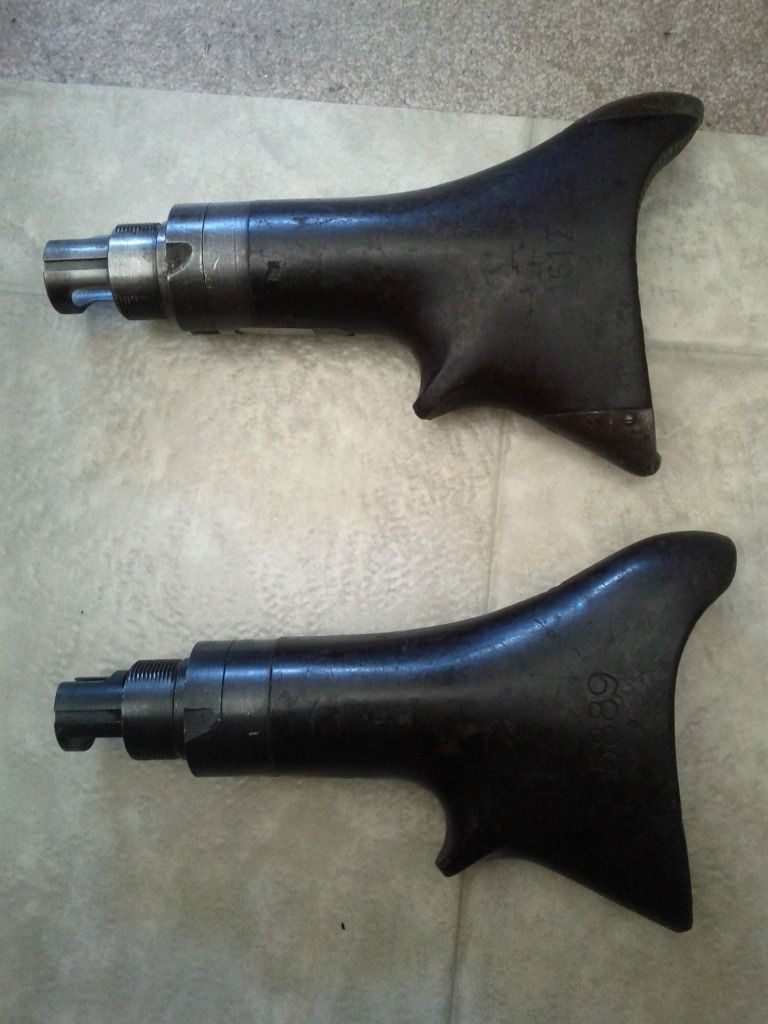 Stock 2: Top one in pictures. Metal Reinforced Bakelite Stock. Serial 1612, WaA4 above it. Engraving on stock 1612 and d. No other marks found. Big chip on the protrusion on the stock.
