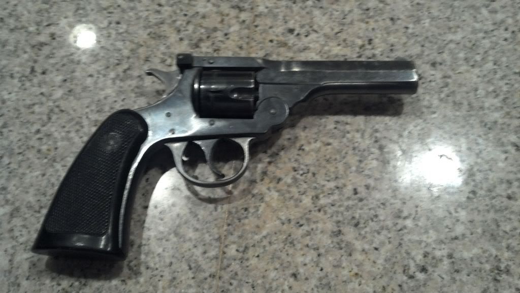 A guy I work with called me today and wanted to sell me his dad's old H&R revolver. It was made during WWII (1943-44 by the serial number) and his father had to be armed because he worked for Nye County Health until the late '60s. My co-worker doesn't know when his dad bought it or how long he carried it. According to the stories he's told me, one of the duties of his dad's job was to perform the health checks on the working girls.