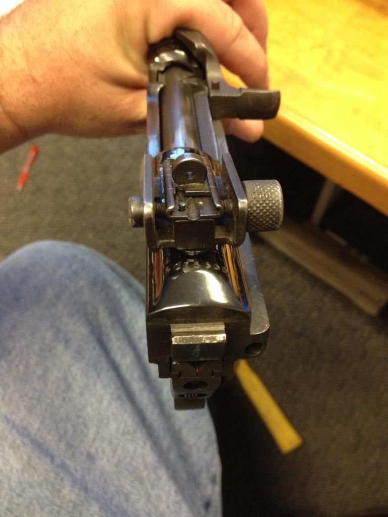 Everything is consistent with re-arsenal with this in regards to the parts. It has the lugged barrel band, modified magazine catch, rotary safety, Underwood trigger housing, Rockola front sight, Winchester hammer and so on...
