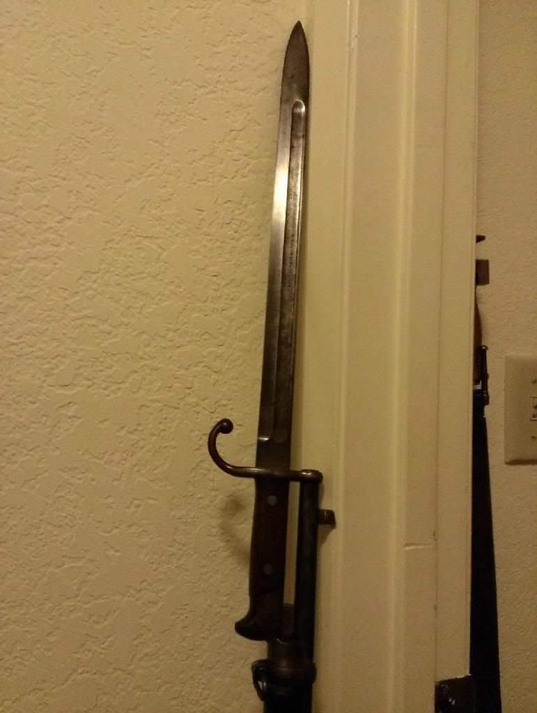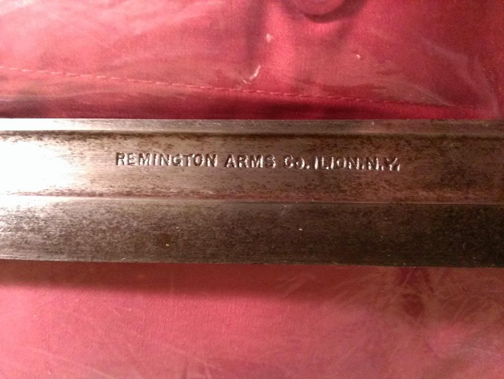 Putting up an excellent bayonet made by Remington for their rolling block rifles. This is the long version made for the French M1914 in 8x50mm Lebel. They made about 10,000 of them in 1914 for the French Army's reserves and rear-echelon units.