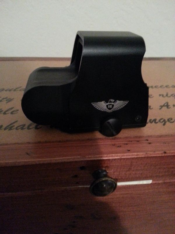I picked up an AR-15 from a buddy of mine. It came with a EOTech knock off style site. It's a switchable red dot / green dot. CR123 battery.