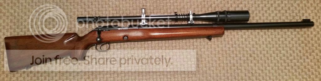 I used my 1956 Winchester Model 52C and Eley Tenex Red Box. It has mounted a Unertl 24x scope.