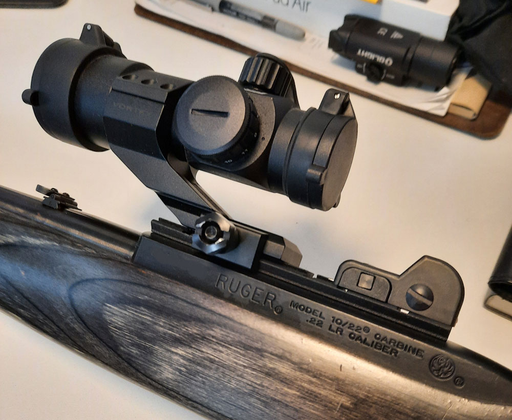Anyone running Techsights with a red dot on the receiver? The rear sight uses two of the mounting screws on the rear, so there are only two screws towards the front of the receiver to mount a rail section. It doesn't seem like it will be sturdy enough with two screws so close together. The only other option I see is to mount the red dot on the barrel using the Magpul X-22 mount. -