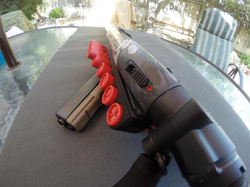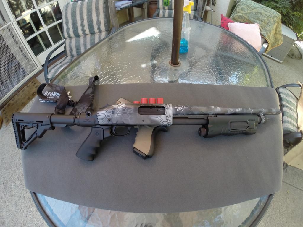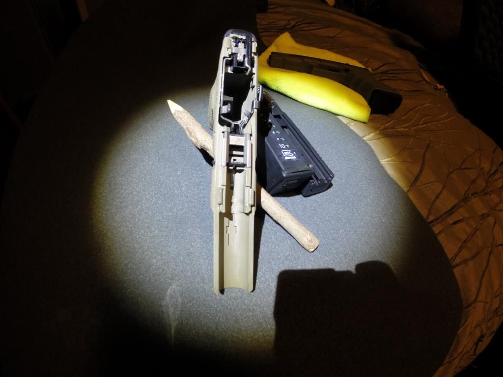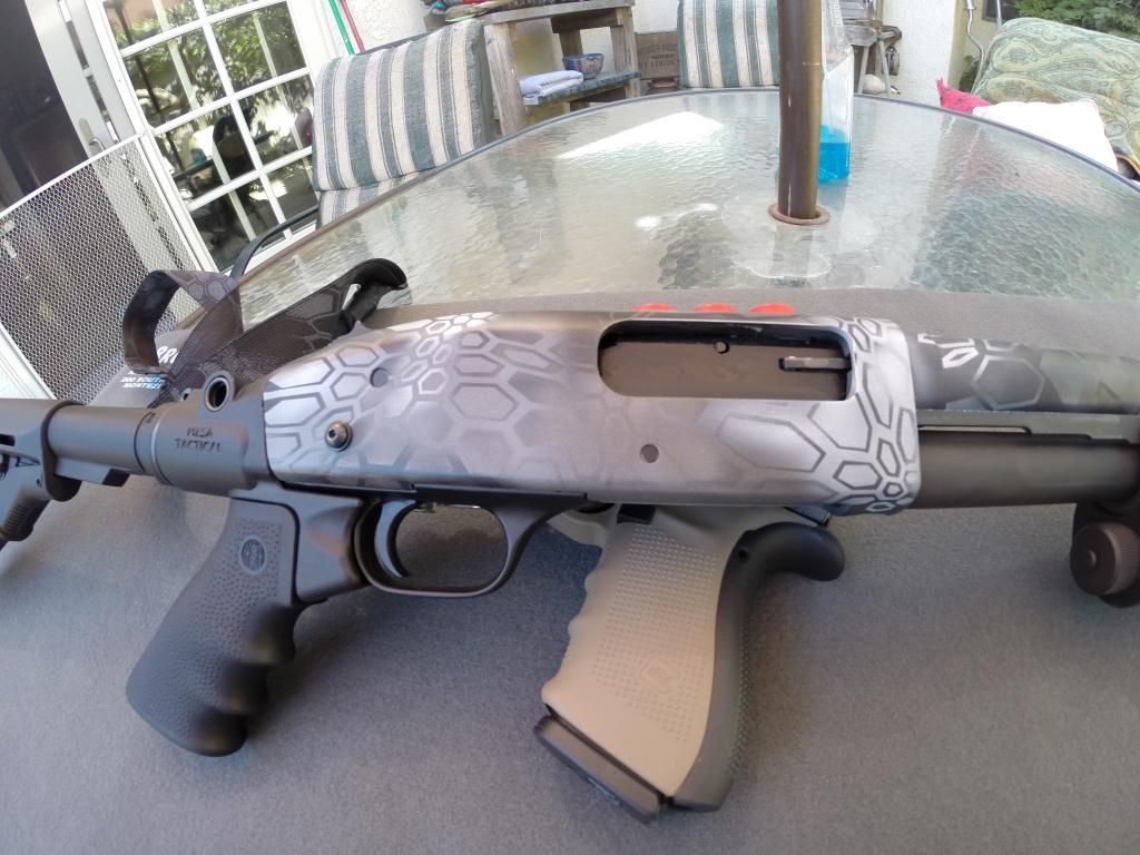 As far as this project, everything was stripped and painted in Tungsten grey as a base color, hit with white and graphite black stenciled and all done again. A flashing in the oven took place after every color both before and after stencils had been placed. I used 0000 steel wool and lightly distressed every color between flashings for a warn/used look. Hard to see until you get close, last is a clear coat over everything. All colors done in Matte/flat hardener to pain ratios as per NCIS instructions. Hope people like it, was told people here would appreciate it on this site so I finally made it around to making my first post. Also pictured is a Glock 21 generation 4, done in FDE/tan custom mix in flat ratio with clear again. Thank you for your time and I hope you enjoy it as much as I love doing it. Forgive the Go Pro pictures, ill have professional pictures taken in the future.