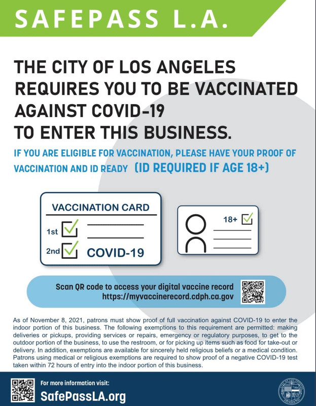 A friend told me that her ex-husband took their boys to a restaurant in Woodland Hills (LA County) yesterday and he called her saying they wouldn't let them in without seeing the kids vaccine passport.