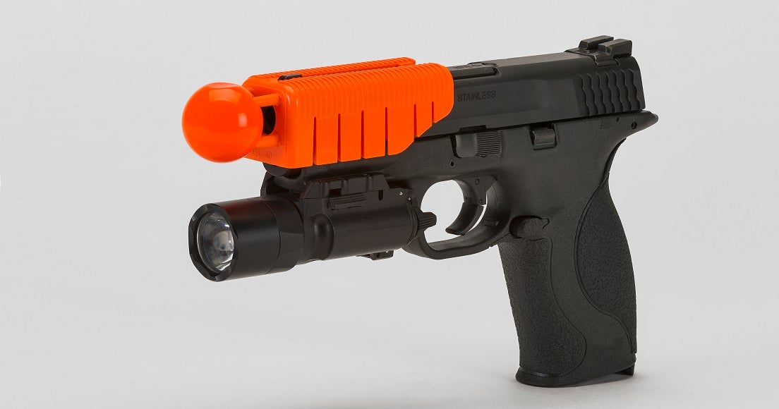 IDK, in a split second scenario I doubt a LEO would consider snapping this thing on the end of his duty weapon. And if he has a flashlight in one hand, and his weapon at the ready in the other, doesn't seem like this would be a "viable" alternative at all........
